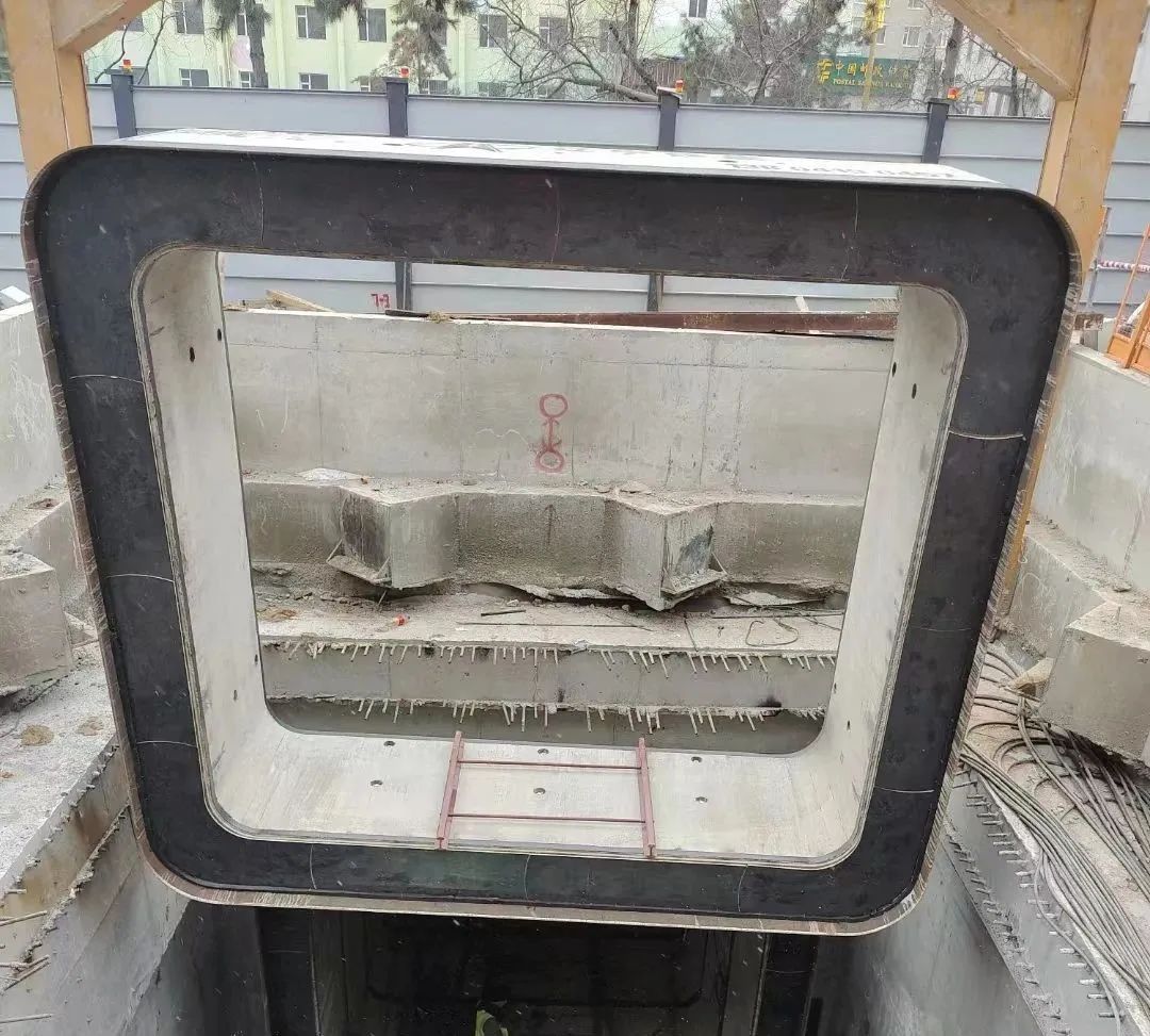 在該項(xiàng)目周邊環(huán)境復(fù)雜、作業(yè)空間受限的情況,項(xiàng)目進(jìn)場后,技術(shù)人員排查了周邊管線及建筑物地理位置,并制定了周密的相關(guān)排遷方案,最大限度減小項(xiàng)目施工對周邊的影響。選用RPB4800X5500型矩形多刀盤土壓平衡頂管機(jī)作為這個(gè)工程的頂管機(jī)械,保證開挖面穩(wěn)定,防止地面沉降或隆起,將對地面建筑物、構(gòu)造物、埋設(shè)物的影響降到最低。
