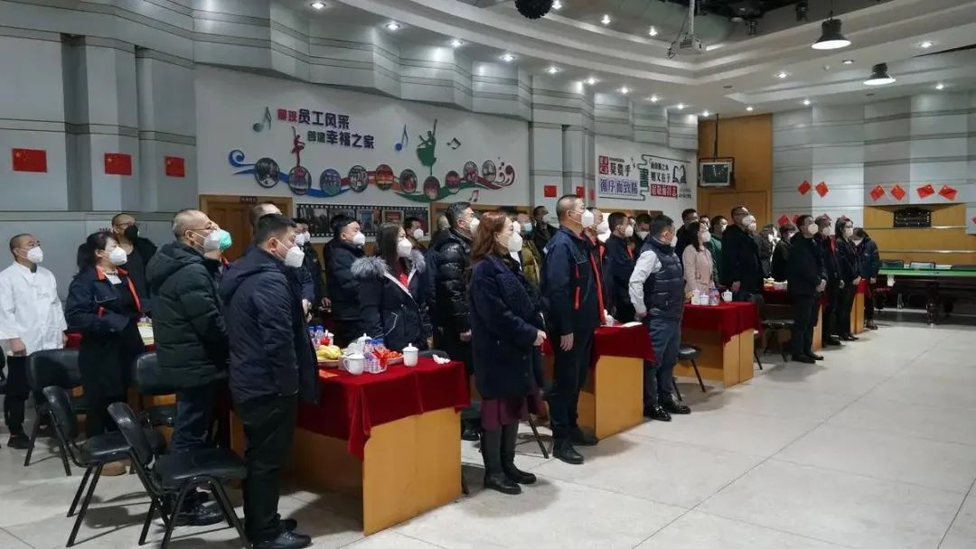 會議現(xiàn)場溫馨喜慶、氣氛熱烈,全體參會人員齊聲合唱企業(yè)歌曲“榮耀同行”,在嘹亮的歌聲中會議正式開幕。