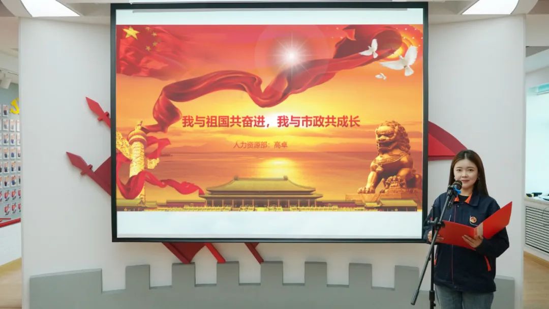 人力資源部代表高卓,演講的主題是“我與祖國共奮進 我與市政共成長”